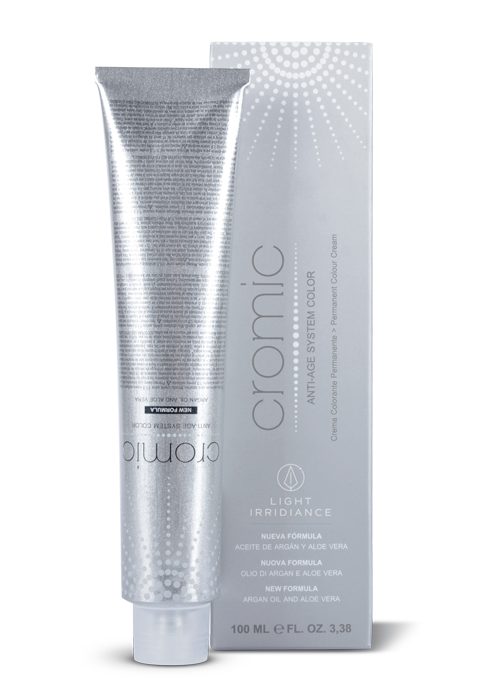 Cromic è l’innovativa colorazione permanente in crema potenziata con anti-age system, ad azione altamente condizionante, rigenerante e protettiva. La sua formula esclusiva a base di olio di argan dalle proprietà lucidanti, emollienti e antiossidanti e aloe vera dalle proprietà condizionanti, idratanti e lenitive, garantisce il massimo rispetto della struttura dei capelli, rendendoli morbidi, luminosi e idratati nel tempo. L’impiego di pigmenti coloranti di altissima qualità, consente la totale copertura dei capelli bianchi, realizzando colori uniformi e duraturi nel tempo, con riflessature intense e vibranti.